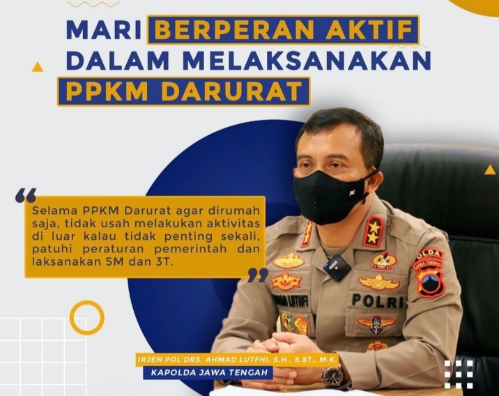Kapolda Jateng Irjen. Pol. Drs. Ahmad Luthfi, S.H., S.St.M.K. juga meminta agar masyarakat memahami pembatasan aktivitas melalui PPKM Darurat.