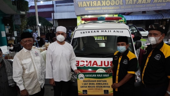 “Baru selesai acara penyerahan mobil Ambulance ke Mesjid Jogokarian di Jogja. Alhamdulillah, sebelumnya Yayasan Haji Anif sudah memberikan 2 unit mobil pembersih masjid di sini. Total sudah 3 unit untuk Jogjakarta, khususnya Mesjid Jogokarian,” ungkap Musa Rajekshah yang didampingi Puspo, owner Wong Solo.