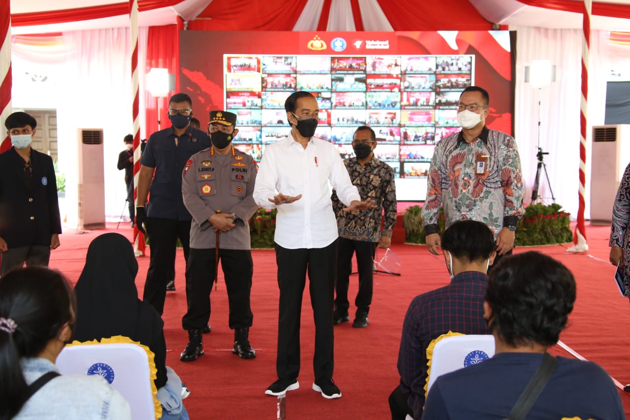 Presiden Jokowi Tinjau Vaksinasi Merdeka se-Indonesia, Sinergi Polri dengan BEM dan OKP