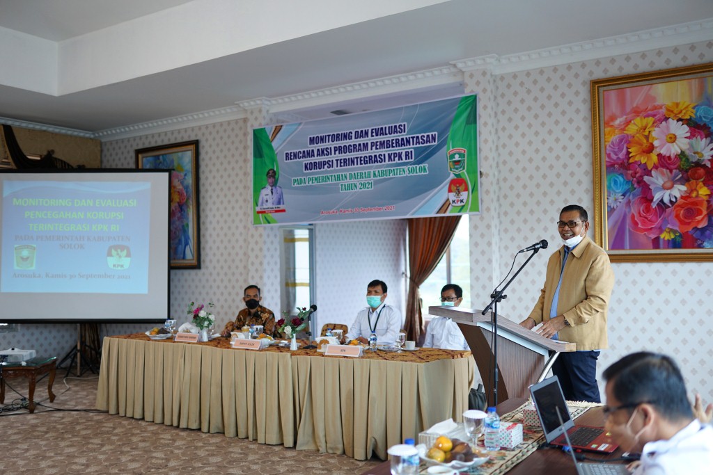 Dalam sambutannya Arif Nurcahyo menjelaskan kedatangan pihaknya dalam rangka monitoring dan evaluasi tata kelola pemerintahan dalam program pencegahan korupsi di Kabupaten Solok.