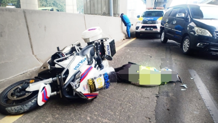 Seorang anggota polisi tewas usai ditabrak truk di Tol Cikampek.