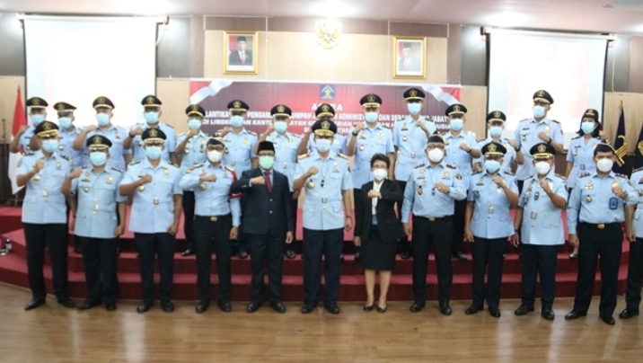 NKRIPOST, SUMUT/Medan – Kepala Kantor Wilayah Kementerian Hukum dan Hak Asasi Manusia (Kemenkumham) Sumatera Utara Imam Suyudi mengingatkan para pejabat yang baru saja dilantik agar tidak hanya duduk dibelakang meja, namun harus terus bergerak melakukan perubahan. Hal ini disampaikan Imam Suyudi pada saat melantik pejabat strutural Jajaran Imigrasi di lingkungan Kanwil Kemenkumham Sumut di Aula Soepomo Kantor Wilayah, Senin (15/11/2021).