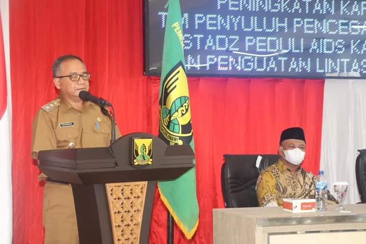 Nkripost, Sukabumi – Wakil Bupati Sukabumi H. Iyos Somantri menghadiri pengukuhan Ustadz Peduli AIDS ( UPA ) terdiri dari 47 orang dari seluruh Kecamatan. Kegiatan yang dilaksanakan di Pendopo Sukabumi itu dirangkaikan dengan workshop peningkatan kapasitas tim penyuluh pencegahan HIV/AIDS, Selasa (23/11/21).