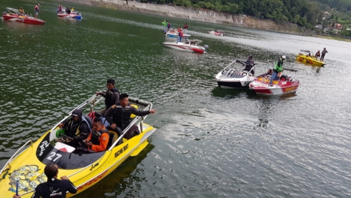 Dua unit speedboat yang meluncur di perairan obyek wisata Telaga Sarangan dikabarkan terlibat tabrakan, Sabtu petang (5/2). Sang pengemudi speedboat jatuh dan tenggelam, sedangkan penumpangnya selamat.