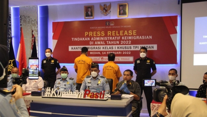 Tindakan administratif Keimigrasian tersebut dilaksanakan oleh Kantor Imigrasi Kelas I Khusus TPI Medan. Press Release yang dihadiri sejumlah media elektronik dan media cetak di Kota Medan ini membahas terkait tindakan administratif Keimigrasian awal tahun 2022. (MSLoan)