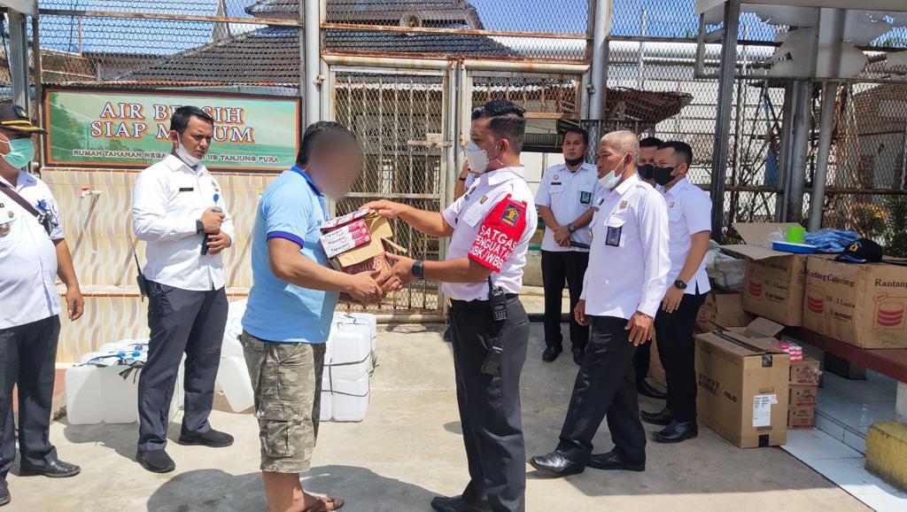 Pembagian kebutuhan pokok tersebut disambut antusias oleh seluruh warga binaan Rutan Tanjung Pura.