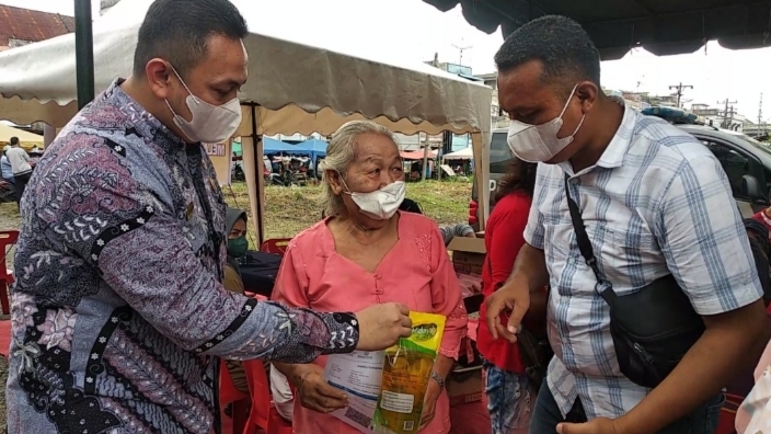 Kapolsek Medan Timur, Kompol Rona Tambunan, mengatakan pada kegiatan vaksinasi turut dibagikan minyak goreng kemasan berisi 1 liter secara gratis kepada masyarakat usai disuntik vaksin.