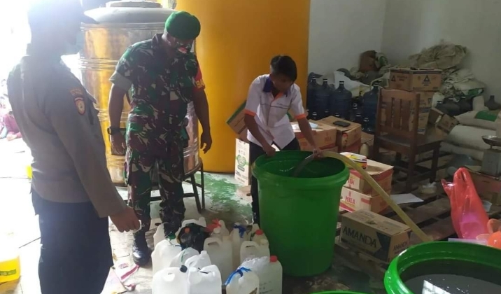 NKRIPOST, BERAU Dalam memberikan rasa aman dan nyaman bagi masyarakat, Babinsa Koramil 0902-04/Trd Kodim 0902/Bru Serma Bimo bersama Bhabinkamtibmas Bedungun mengamankan kegiatan operasi pasar Minyak Goreng Curah Bersubsidi yang di gelar oleh Pemkab untuk disalurkan kepada UMKM Berau, bertempat di Gudang CV. Tirta Jaya Matrial Utama JL. SMP RT. 02 Kelurahan Bedungun Kecamatan Tanjung Redeb, Kabupaten Berau Provinsi Kalimantan Timur, Sabtu (16/04/2022).