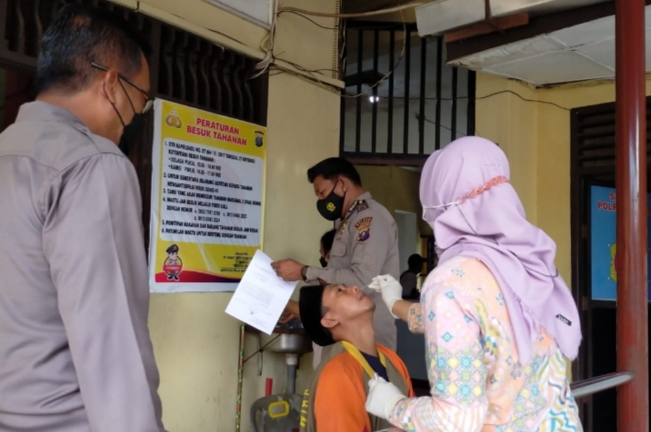 Kasat Tahti menjelaskan kegiatan Swab Rapid Tes Antigen yang diikuti 8 orang tahanan juga sebagai administrasi untuk penitipan tahanan ke LP Labuhan Ruku.