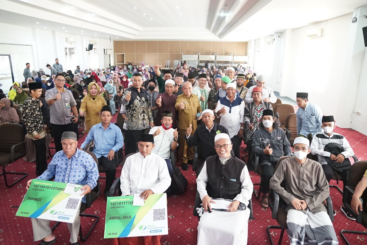 Kegiatan ditutup dengan penyerahan secara simbolis santunan JKK dan JKM oleh Wali Kota Molen kepada para guru ngaji se-Kota Pangkalpinang. (0999)