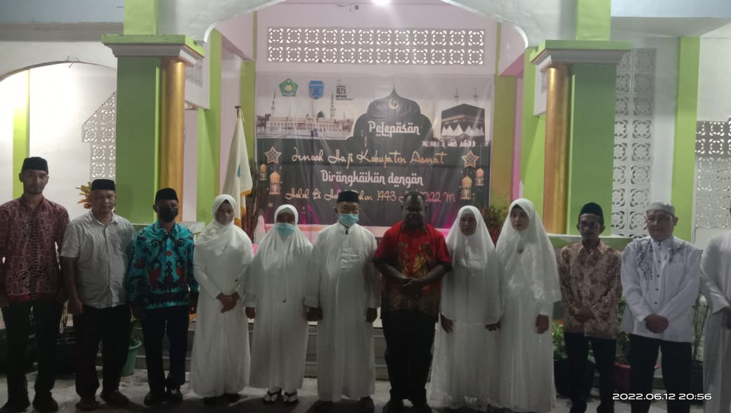 NKRIPOST, ASMAT – Bupati Asmat Elisa Kambu didampingi Kepala Kantor Kementerian Agama Kabupaten Asmat Yohanes Nahak resmi melepas jama’ah Calon Haji dari Kabupaten Asmat untuk menunaikan Ibadah Haji di tanah suci. Acara pelepasan tersebut dilangsungkan di beranda masjid Saiful Bukhori Cemenes Agats, Minggu (12/6/2022) malam yang dirangkaikan dengan acara halalbihalal 1443 H / 2022 M.