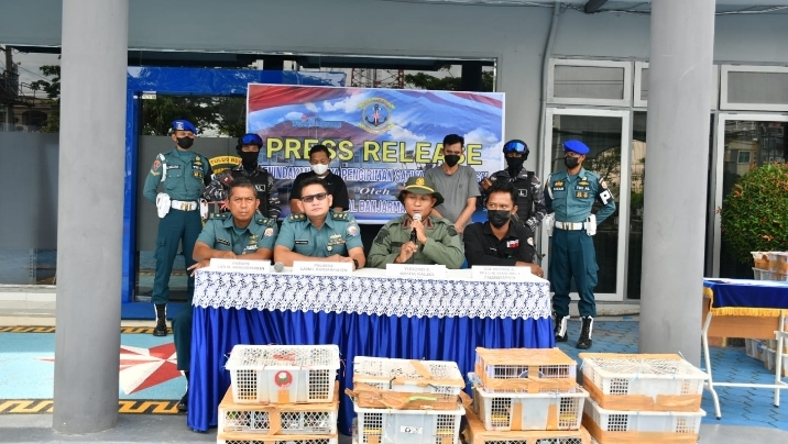 Konferensi Pers Lanal Banjarmasin Berhasil Gagalkan Pengiriman Satwa Burung Ilegal