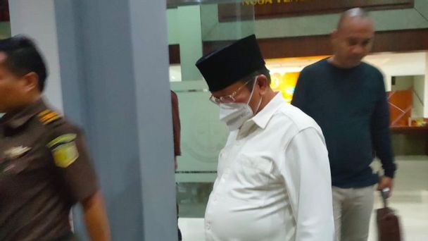 Wabup Lombok Timur Rumaksi (tengah) usai menjalani pemeriksaan sebagai saksi dalam kapasitas sebagai Ketua HKTI NTB di kasus korupsi dana KUR perbankan di Gedung Kejati NTB, Mataram, Rabu (29/6/2022) malam.