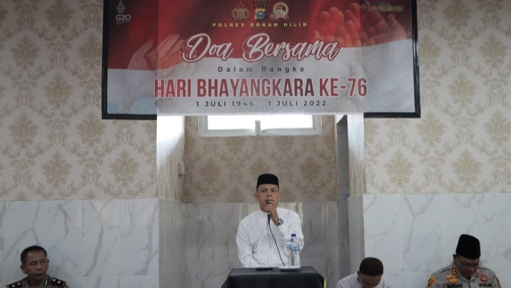 Kapolres Rokan Hilir AKBP Nurhadi Ismanto SH SIK melalui Kasi Humas AKP Juliandi SH menerangkan pelaksanaan kegiatan Doa Bersama dan Binrohtal dalam rangka membina kepribadian dengan meningkatkan keimanan.