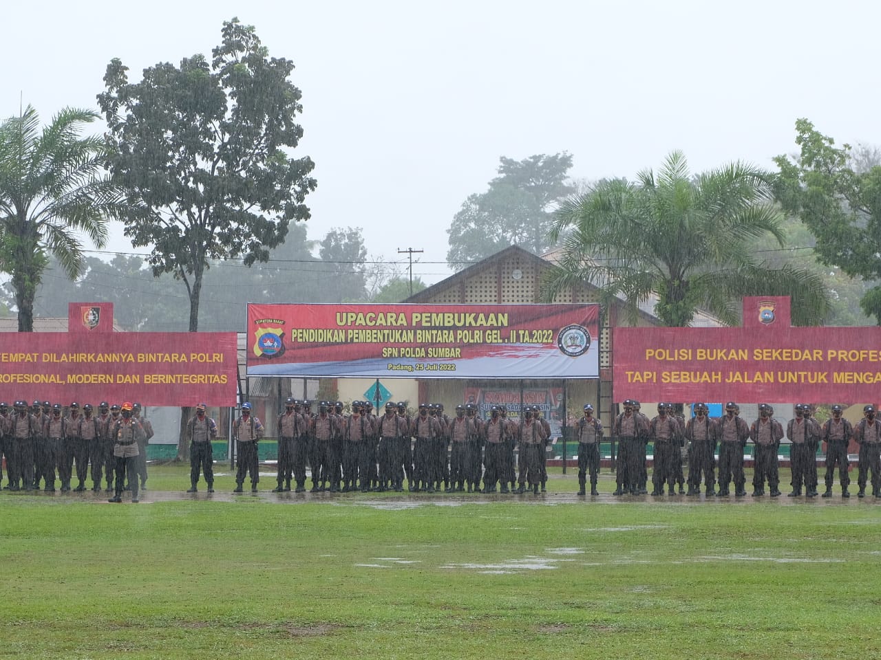 Walaupun ditengah guyuran hujan lebat, upacara pembukaan Diktukba ini dengan jumlah 233 siswa berlangsung dengan khidmat.