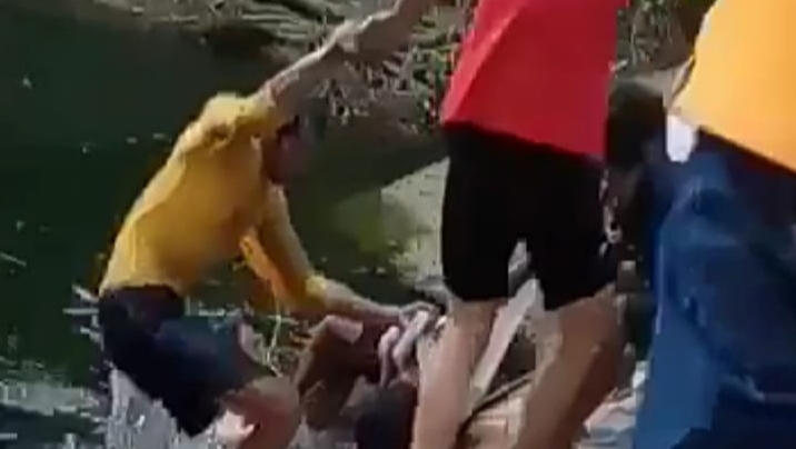 Sementara pemancing lain, Wahyu, yang mengetahui kejadian langsung berteriak meminta tolong kepada warga yang mendengarnya.
