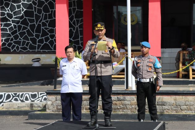 Kapolres Flotim, AKBP.I Gede Ngurah Jpni. M.,S.H.,S.I.K, M.H. saat memimpin Apel Operasi Lilin Turangga, Kamis,22/12/2022, didampingi Kadis Kesehatan, dr.Agustinus Ogie Silimalar.