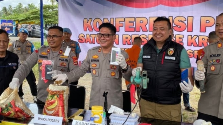 Dia menyatakan pula, dari penelusuran yang dilakukan, polisi sampai di lokasi galian penambangan emas di Dusun Teluk Harapan, Desa Sidomukti mendapati 18 besi tabung gelondongan yang digunakan untuk mengolah batu hasil tambang untuk menjadi emas.
