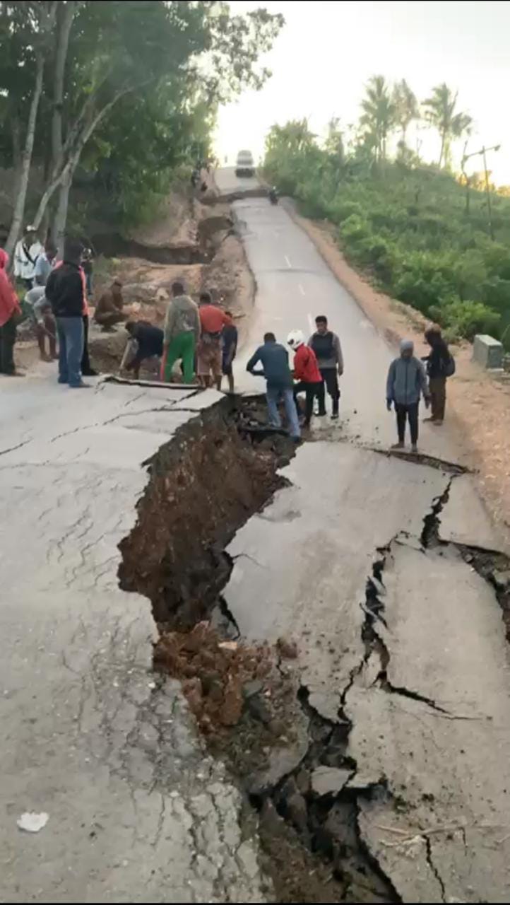 Kepala bidang PU Binamarga Provinsi NTT, Adi Mboeik yang konfirmasi media ini pada lokasi bencana menyampaikan kondisi jalan tersebut belum dapat di fungsikan untuk sementara waktu.