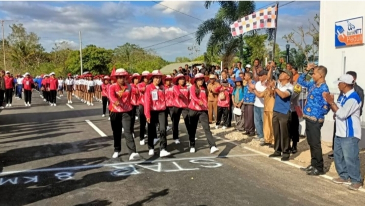 Para peserta gerak jalan akan menempuh jarak sepanjang 8 kilo meter yang berakhir finish di depan kantor camat Tasifeto barat.