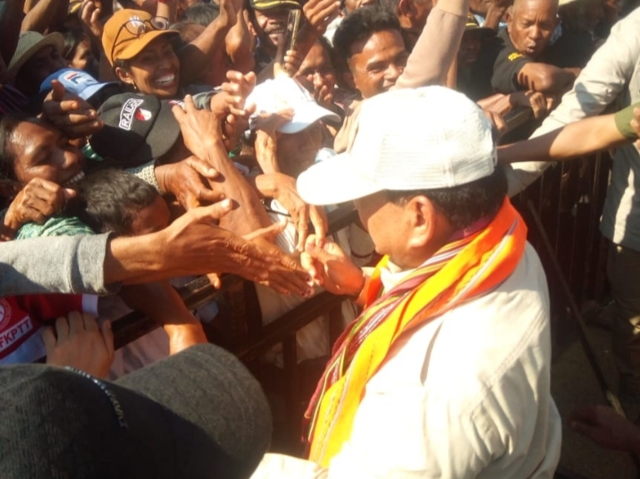 Prabowo Subianto Disambut Tumpah Ruah Warga, Atambua Mendadak Macet
