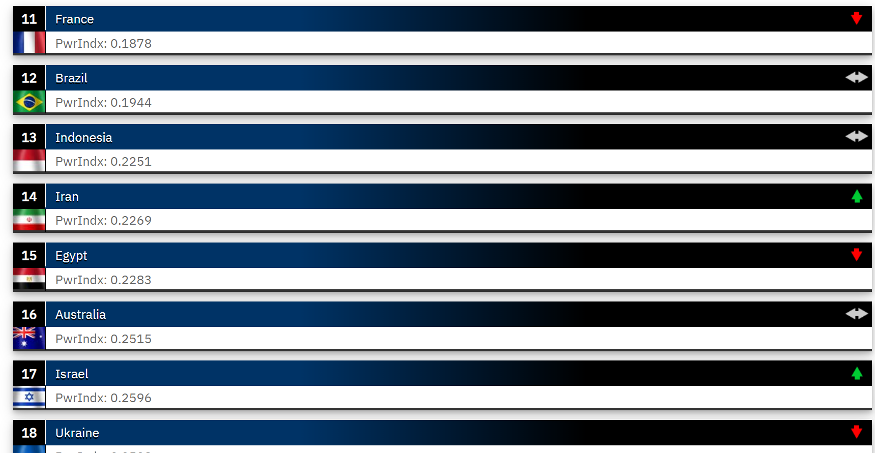 Situs Lowly Institute menyebut jika Indonesia merupakan negara dengan kekuatan menengah di Asia. Indonesia adalah salah satu dari enam negara di kawasan ini yang mencatat peningkatan skor keseluruhan, meski masih di bawah tingkat sebelum pandemi.