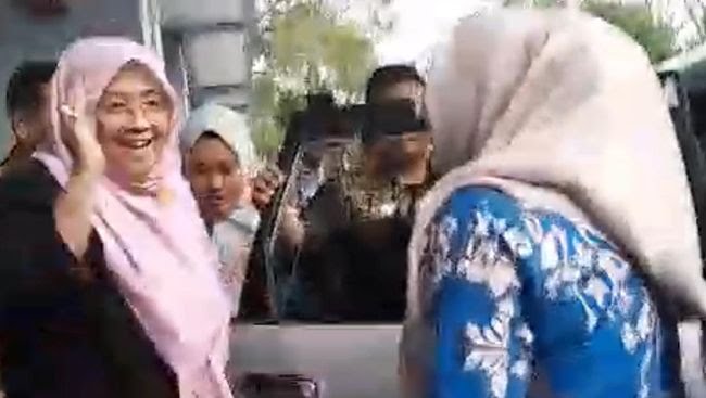 Dalam video tersebut, Euis yang terlihat turun dari mobil kemudian bergegas masuk ruangan sempat bernarasi di hadapan sejumlah perempuan berpakaian guru.