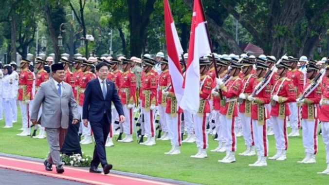 Sementara itu, Presiden Prabowo menyambut langsung kedatangan PM Wong di serambi barat Istana Merdeka. Senyum dan salam hangat mengawali kunjungan ini, disertai dengan keakraban yang terpancar di antara kedua pemimpin tersebut.