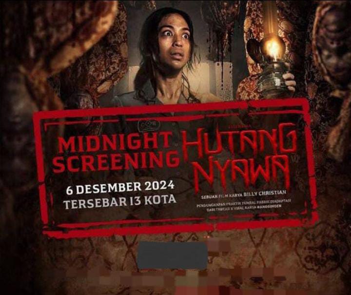 NKRIPOST TANGERANG – Film horor terbaru berjudul “Hutang Nyawa” memulai penayangan perdananya di kota Tangerang yakni bioskop CBD Ciledug XXI, Jumat (6/12/2024) malam pukul 21.15 WIB.