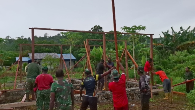 NKRIPOST, MANOKWARI UTARA – Semangat pengabdian terus ditunjukkan personel Satuan Tugas (Satgas) TNI Manunggal Membangun Desa (TMMD) Ke -128 Kodim 1801/Manokwari dalam mempercepat pembangunan empat unit Rumah Layak Huni (RLH) bagi warga Kampung Tanah Rubuh, Distrik Manokwari Utara, Kabupaten Manokwari, jumat (24/04/2026).